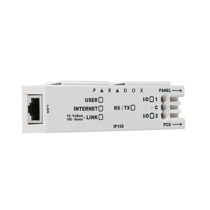 ماژول شبکه Paradox IP150 یکی از ماژولهای کلیدی در سیستمهای امنیتی برند پارادوکس کانادا است که امکان کنترل و مانیتورینگ سیستم اعلام سرقت از طریق اینترنت، شبکه LAN یا WAN را فراهم میسازد. این ماژول بهصورت مستقیم به پورت سریال کنترلپنل متصل شده و قابلیت مدیریت کامل سیستم را از راه دور در اختیار کاربر قرار میدهد.