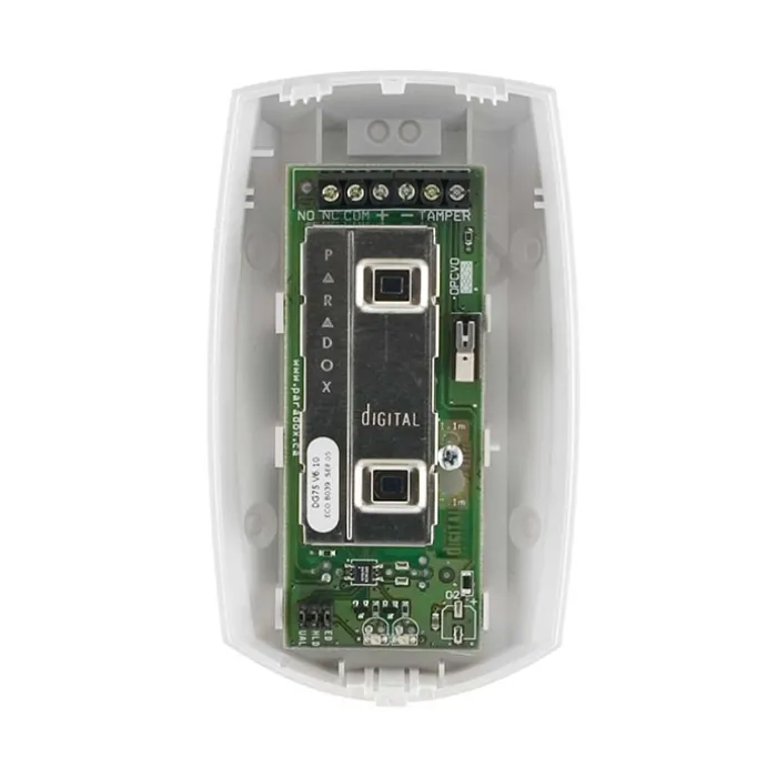 سنسور حرکتی DG75 یکی از دقیق‌ترین و مطمئن‌ترین چشمی‌های فضای داخلی شرکت Paradox کانادا است که برای محیط‌هایی طراحی شده که در آن‌ها حیوان خانگی وجود دارد. این سنسور با استفاده از دو حسگر دوگانه (Dual PIR) و سیستم پردازش دیجیتال پیشرفته، توانایی تشخیص دقیق حرکت انسان را دارد و هم‌زمان می‌تواند حیوانات خانگی تا ۴۰ کیلوگرم را از انسان تفکیک کند تا آلارم اشتباه ایجاد نشود.